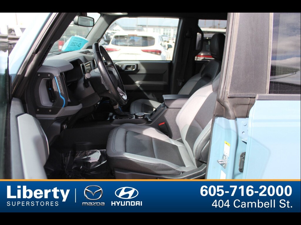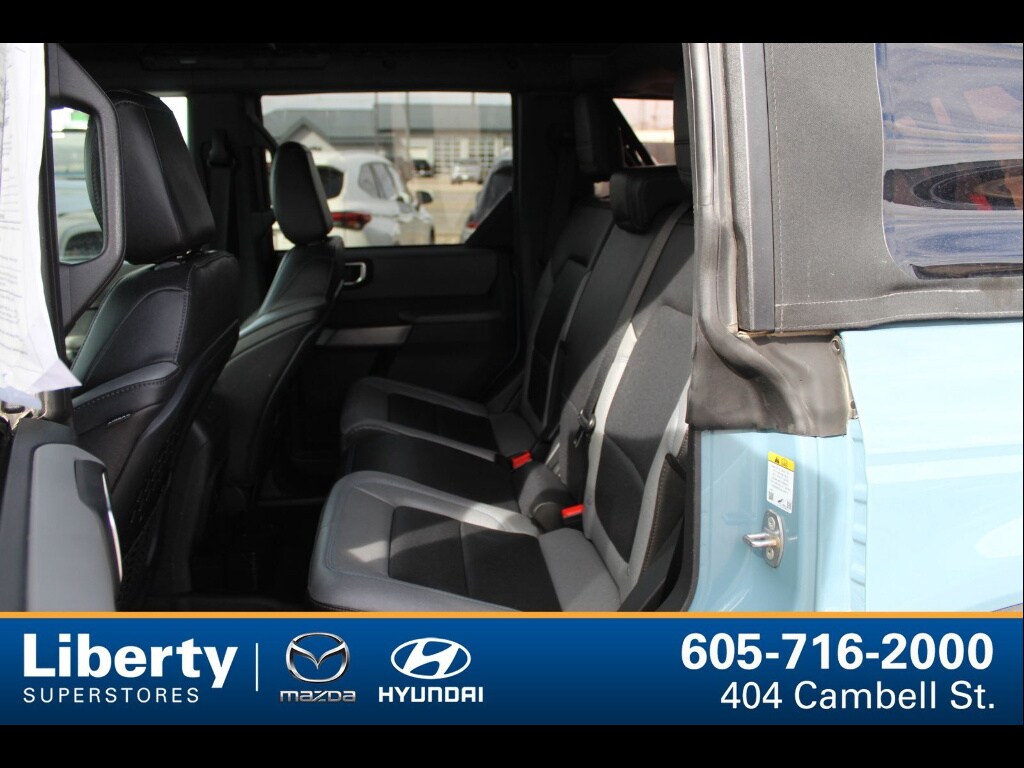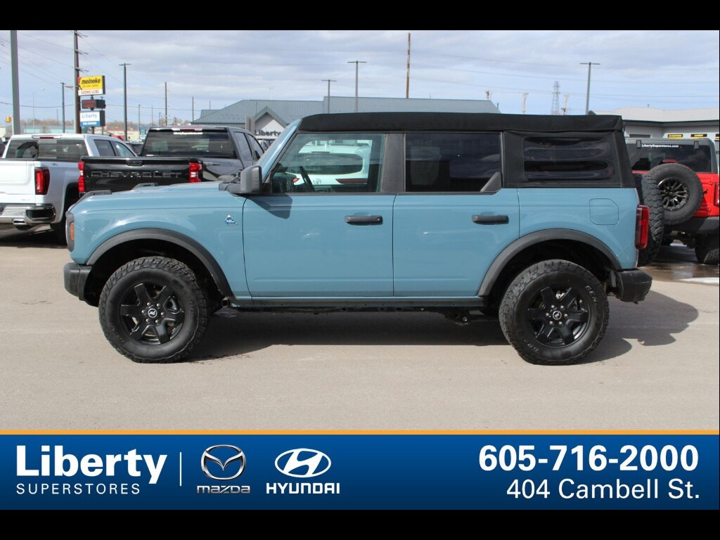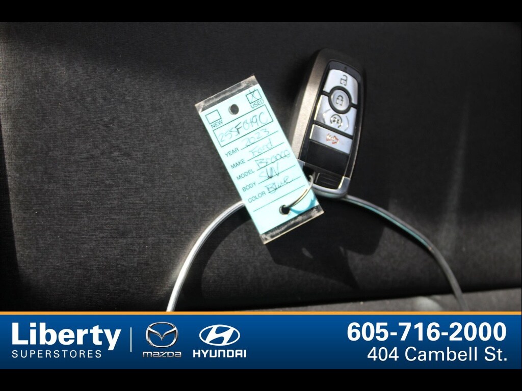 Experience adventure in this striking BLUE 2023 Ford Bronco Black Diamond 4x4 SUV. Built for off-road excitement and daily comfort, it features the sought-after EcoBoost 2.3L Turbo I4 engine paired with a 7-speed manual transmission and off-road tuned suspension. Take on any terrain with electronic hi-lo 4WD, rear and front skid plates, hill descent control, and rear locking differential. Stay connected on the road with SYNC infotainment, wireless Apple CarPlay and Android Auto, SiriusXM satellite radio, and FordPass Connect with Wi-Fi hotspot capability. Enjoy modern conveniences like push-button start, keyless entry, power windows, and heated side mirrors. Safety comes standard with front automatic emergency braking, pedestrian detection, lane keeping assist, rearview camera, and a host of airbags. The Black Diamond trim gives you rugged vinyl upholstery, rubberized flooring, and easy-clean surfaces, perfect for outdoor enthusiasts. Ready to explore? Schedule your test drive today and see why the Bronco Black Diamond stands out as the ultimate SUV for both city and trail.
