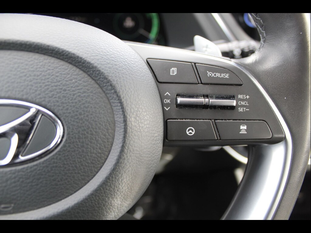 Experience the perfect blend of efficiency, technology, and luxury in this 2023 Hyundai SONATA Hybrid Limited. Powered by a 2.0L Hybrid I4 engine with 192hp and a smooth 6-speed shiftable automatic transmission, this sedan delivers impressive fuel economy and a responsive drive. Enjoy peace of mind with advanced safety features including Intersection Turn Automatic Emergency Braking, Lane Centering Autonomous Lane Guidance, Rear Cross Traffic Alert, and a Surround View Camera System. Stay connected and comfortable with a 10.25-inch infotainment touchscreen, Apple CarPlay, Android Auto, ventilated and heated leather-trimmed seats, and a panoramic sunroof. The SONATA Hybrid Limited also boasts Adaptive Cruise Control with Stop & Go, Head-up Display, Blue Link app compatibility, and Remote Engine Start for ultimate convenience. Aluminum alloy wheels and LED headlights complete the sophisticated package. Discover why the SONATA Hybrid Limited stands out among hybrid sedans-visit us today for a test drive. WE LOOK FORWARD TO HEARING FROM YOU!